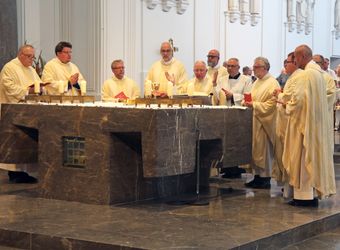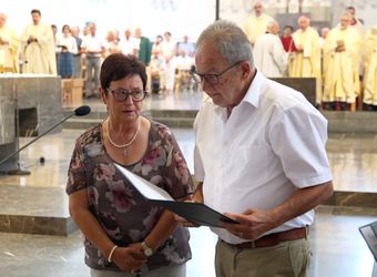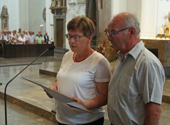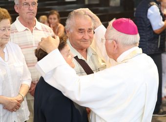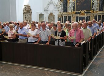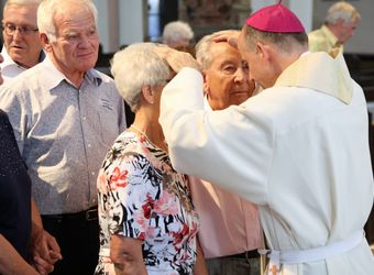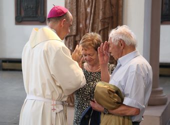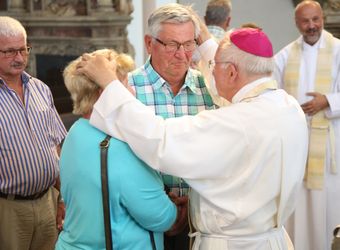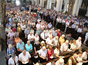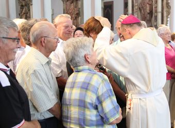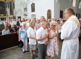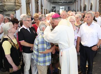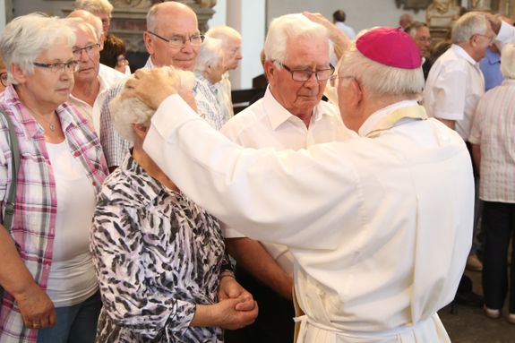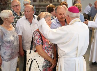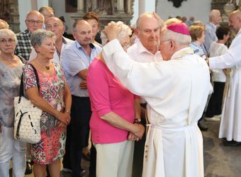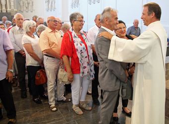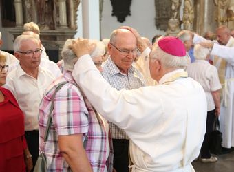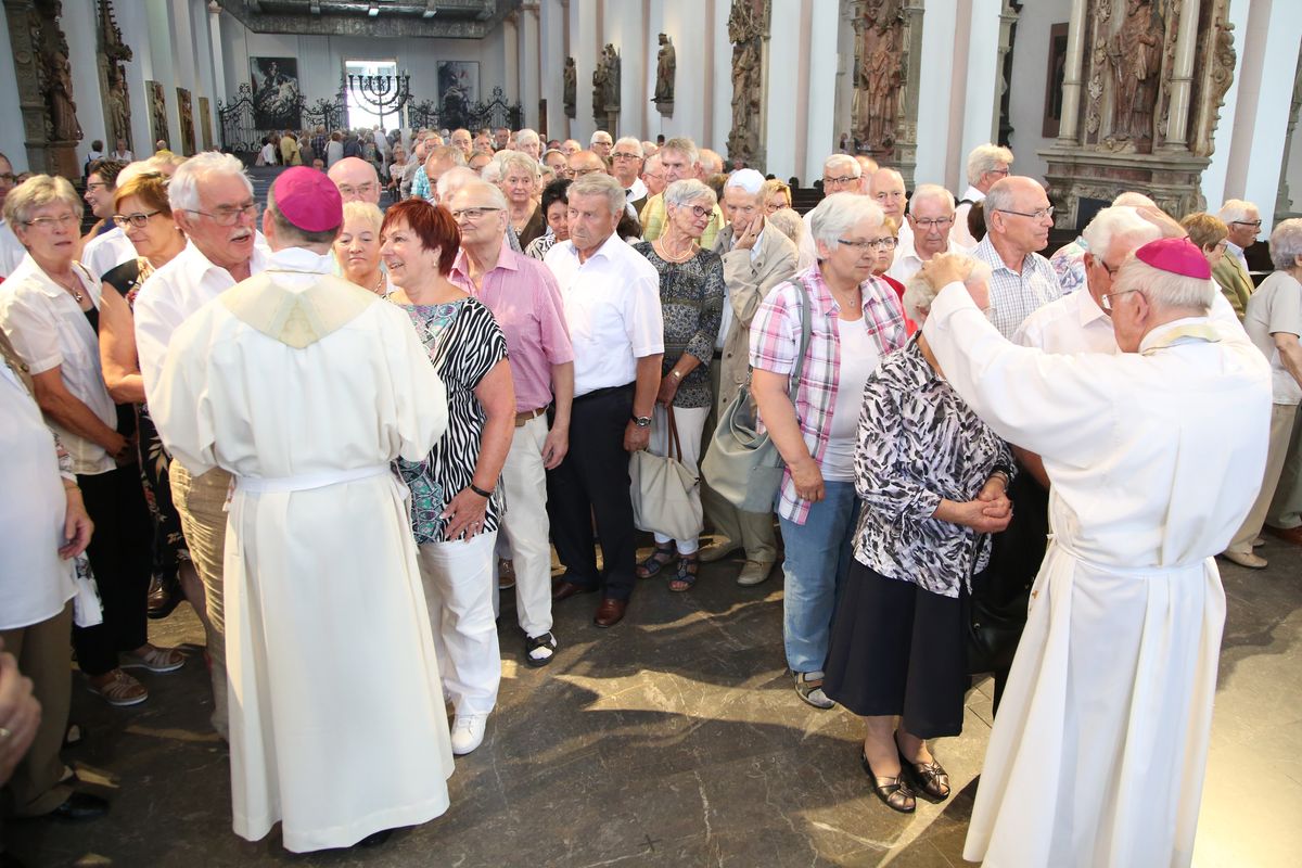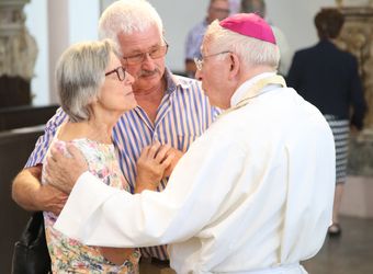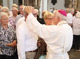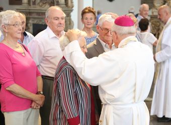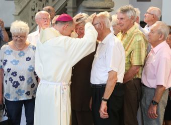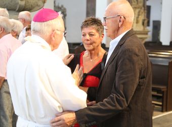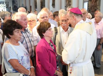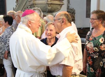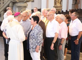 Weihbischof Ulrich Boom hat am Donnerstagnachmittag, 4. Juli, einen Pontifikalgottesdienst mit Ehepaaren aus den Dekanaten Alzenau, Aschaffenburg-Ost, -Stadt und -West, Miltenberg, Obernburg und Haßberge gefeiert, die auf 50, 60 oder 65 gemeinsame Jahre zurückblicken.