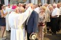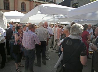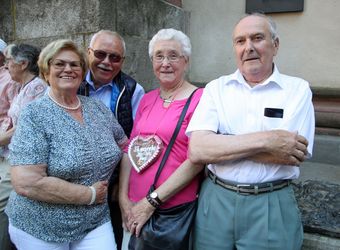 Auf dem Kiliansplatz zwischen Dom und Neumünster war nach dem Gottesdienst bei Sonnenschein und sommerlichen Temperaturen Zeit für Begegnungen. „Immer wieder verzeihen, auch wenn es mal dicke kommt“, nannten Ortrud und Manfred Hasenstab aus Roßbach (Dekanat Obernburg) als Tipp aus fünf Jahrzehnten Ehe. Ortrud Hasenstab empfahl zudem, für eine Aussprache lieber „neutralen Boden“ als die eigene Wohnung zu nehmen. „Nicht auf seiner Meinung beharren“, ergänzten Ingeborg und Toni Maier aus Sulzbach am Main, die ebenfalls auf 50 Ehejahre zurückblicken. Besser sei es, aufeinander zuzugehen und über alles zu reden.