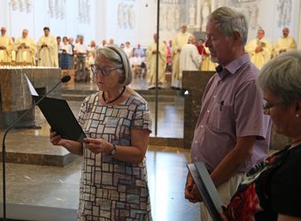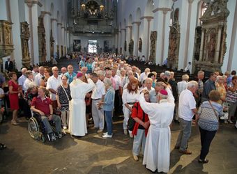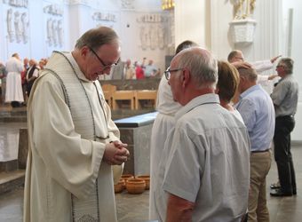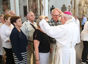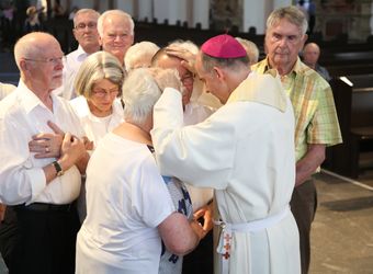 Der Festgottesdienst war der diesjährigen Kiliani-Wallfahrtswoche vorgeschaltet. Diese steht unter dem Motto „Denn Gott hat uns nicht einen Geist der Verzagtheit gegeben, sondern den Geist der Kraft, der Liebe und der Besonnenheit“. Gemeinsam erneuerten die Jubelpaare im Dom ihr Eheversprechen. Nach dem Gottesdienst ließen sich die Ehepartner von Weihbischof Boom, Bischof Dr. Franz Jung, Domkapitular Christoph Warmuth und weiteren Priestern und Diakonen segnen.