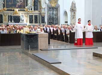 Weihbischof Ulrich Boom feierte mit den Jubel-Ehepaaren im Kiliansdom einen Festgottesdienst.