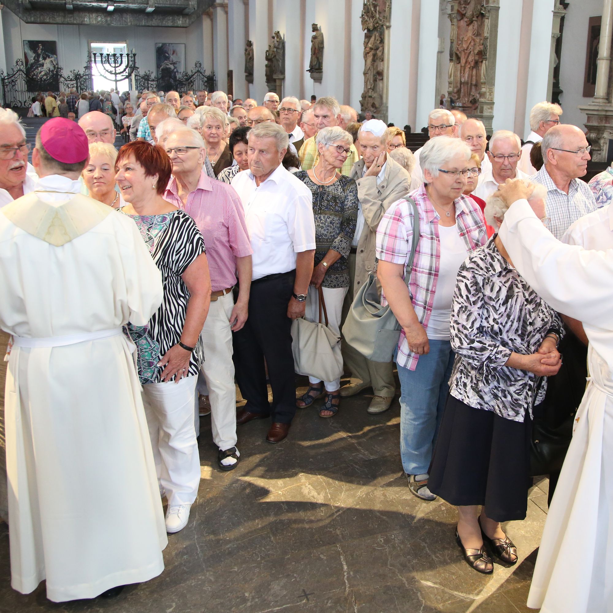 Weihbischof Ulrich Boom feiert Gottesdienst mit Ehejubilaren aus den Dekanaten Alzenau, Aschaffenburg-Ost, -Stadt und -West, Miltenberg, Obernburg und Haßberge – Begegnung auf dem Kiliansplatz