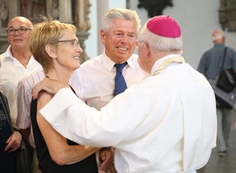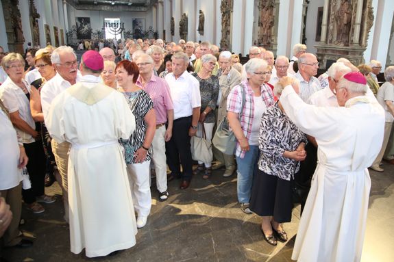 Die Ehepaare ließen sich nach dem Gottesdienst unter anderem von Weihbischof Ulrich Boom (rechts) und Bischof Dr. Franz Jung (hinten) den Segen erteilen.