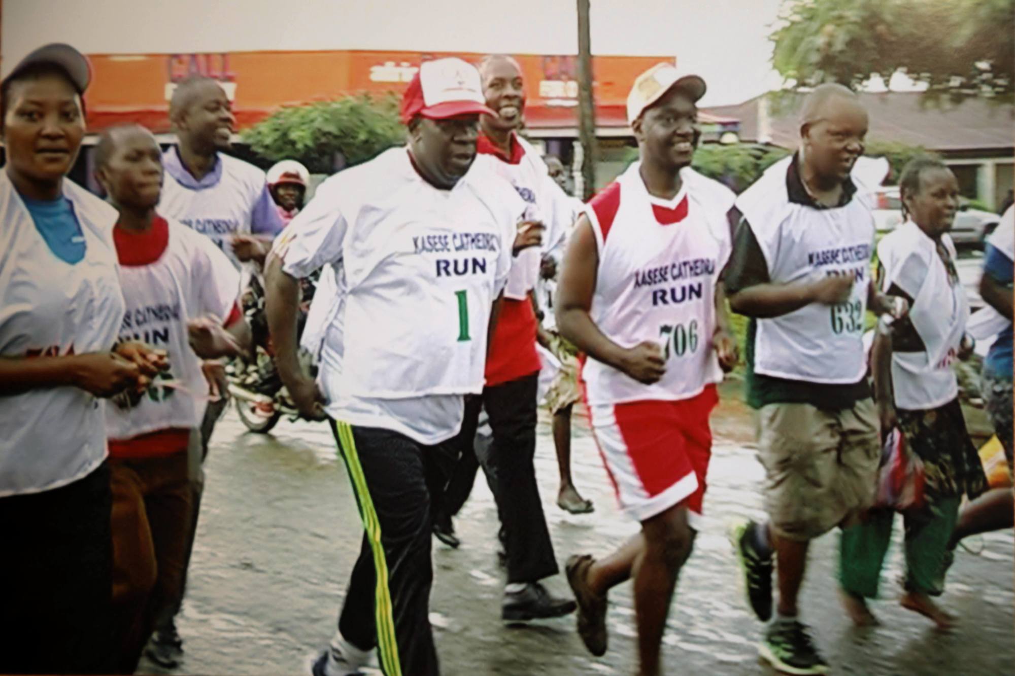 Im liturgischen Bereich steht der ugandische Bischof ebenfalls vor Herausforderungen: „Unser Bistum ist noch sehr jung, es wurde 1989 von der Diözese Fort Portal abgespaltet.“ Allerdings geschah das, ohne dass es eine eigene Kathedrale gab. Die Pfarrkirche von Kasese, die als Dom dient, ist deutlich zu klein. „Wenn alle dicht an dicht stehen, passen gerade mal 300 Menschen hinein. An den Feiertagen behelfen wir uns bislang mit Zelten rund um die Kirche.“ Das sei aber auch nur eine Notlösung, betont der Bischof. Zum einen sähen die Menschen außen nichts vom Geschehen am Altar. „Und wenn es richtig regnet, so wie dieses Jahr an Karfreitag, dann werden sie gnadenlos nass geregnet.“ Deswegen sammelt der Bischof seit seinem Amtsantritt für den Neubau einer Kathedrale. „Nach europäischen Gesichtspunkten ist es ein einfacher Bau, dennoch belaufen sich die Kosten auf 1,2 Millionen Euro.“ 150.000 Euro für den Bau wolle er unbedingt selbst gemeinsam mit seinen Gläubigen aufbringen. „Das ist für unser armes Land viel Geld“. Für das Fundraising hat er unter anderem einen Spenden-Marathonlauf organisiert, berichtet Bischof Kibira. Sogar Ordensfrauen seien für die gute Sache ein paar Kilometer gejoggt. Und auch der Bischof, der in seiner knappen Freizeit Basketball und Tennis spielt, ging für den Dom auf die Laufstrecke – „aber nur die kürzeste Distanz, die angeboten war“.
