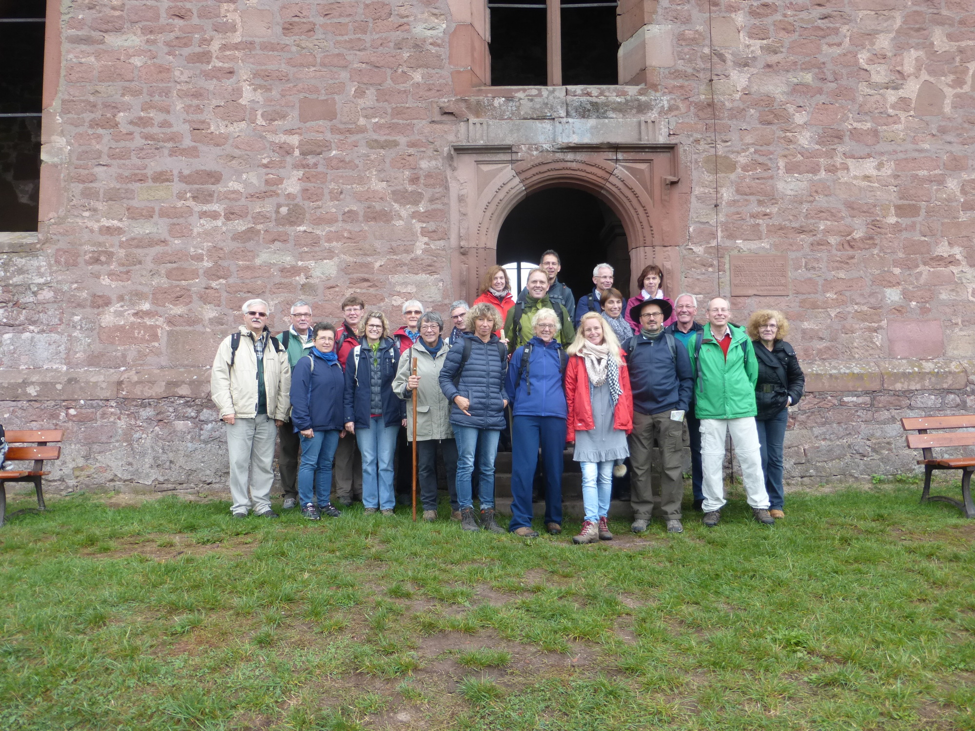 Gemeinsam pilgerte man einen Tag auf einem Teilstück des Jakobsweges, der von Aschaffenburg nach Colmar führt. Der Startpunkt war an der Jakobuskirche in Miltenberg. Der Weg führte dann über die Mildenburg immer am Berghang entlang bis Weilbach und den Weiler Reuental. Danach ging es bergauf zur Gotthardsruine. Hier gab es Informationen zur belebten Geschichte der Kirchenruine. Nach einem gemeinsamen Mittagessen in Amorbach führte der Weg über den Alten Zittenfeldener Totenweg bis nach Schneeberg. In der dortigen Wallfahrtskirche erhielten die Pilger eine sehr informative Führung von Florian Grimm aus Schneeberg. Am Wallfahrtsort wurde eine Andacht gefeiert. Begleitet wurde die Gruppe von PastRef Holger Oberle-Wiesli, der auch für die Fortbildung der Ehrenamtlichen Dienste in den Dekanaten zuständig ist. Immer wieder gab es auf dem Weg Impulse, Gebete und Informationen zum Pilgern. Einen schöne Ausklang fand der Tag im Atelier von Josef Speth, der in seiner Heimatgemeinde selbst seit vielen Jahren den Lektorendienst übernimmt.