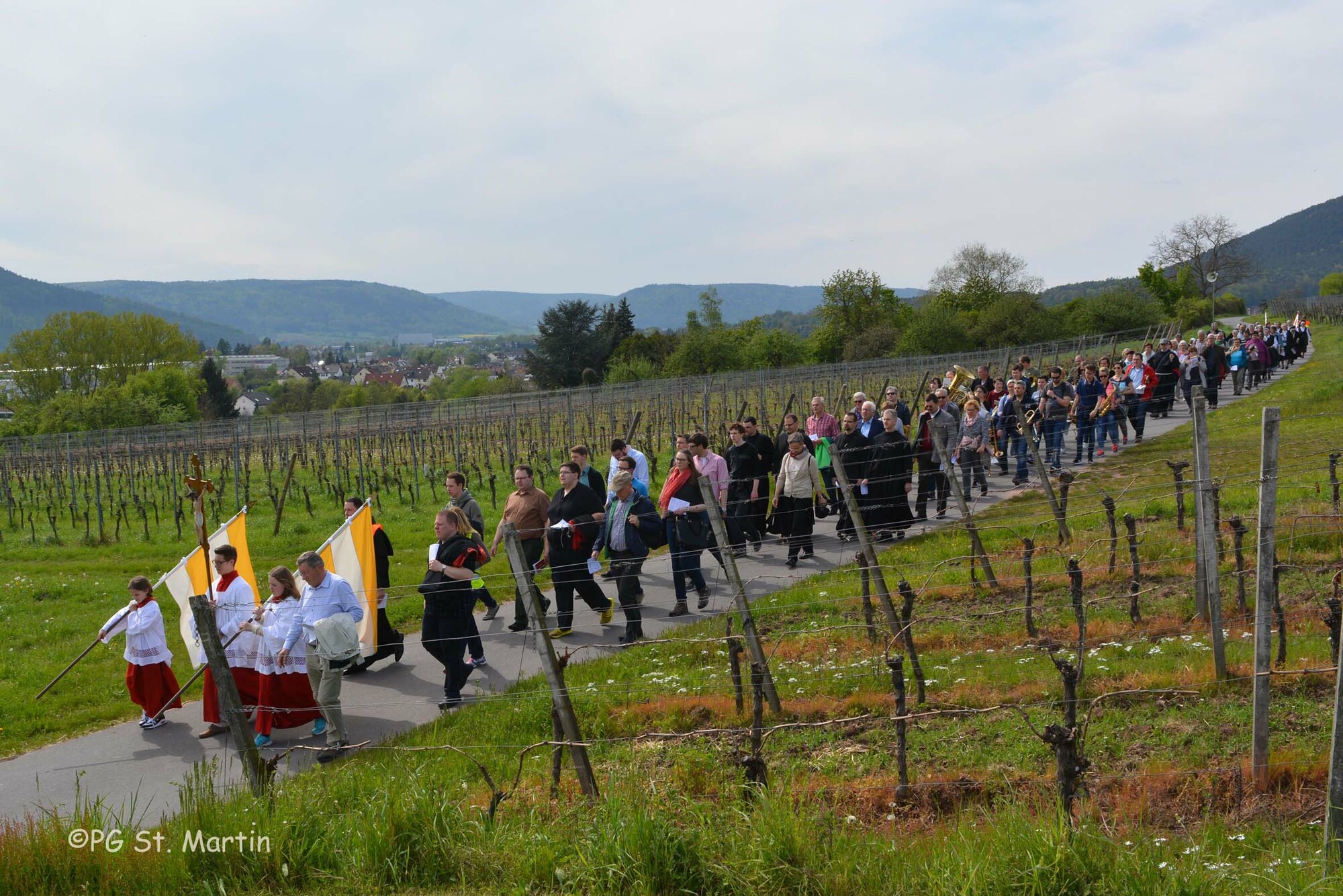 Nach einem kurzen Einblick in die Geschichte der Martinskapelle durch Willibald Schmalbach stimmte Domvikar Weismantel die Pilgergruppe auf die Wallfahrt ein. Musikalisch unterstützt durch die „Rebläuse Bürgstadt“ ging der Weg durch Bürgstadt hinauf in die Weinberge, dann weiter durch die Wiesen des Erftals in Richtung Jugendhaus Sankt Kilian. Halt war an drei Stationen. Für die Texte und Gebete an der ersten Statio zeichneten die Angehörigen des Würzburger Priesterseminars verantwortlich, die zweite und dritte Statio wurden von der Kolpingfamilie Bürgstadt und den Oberministranten aus Miltenberg und Bürgstadt gestaltet.