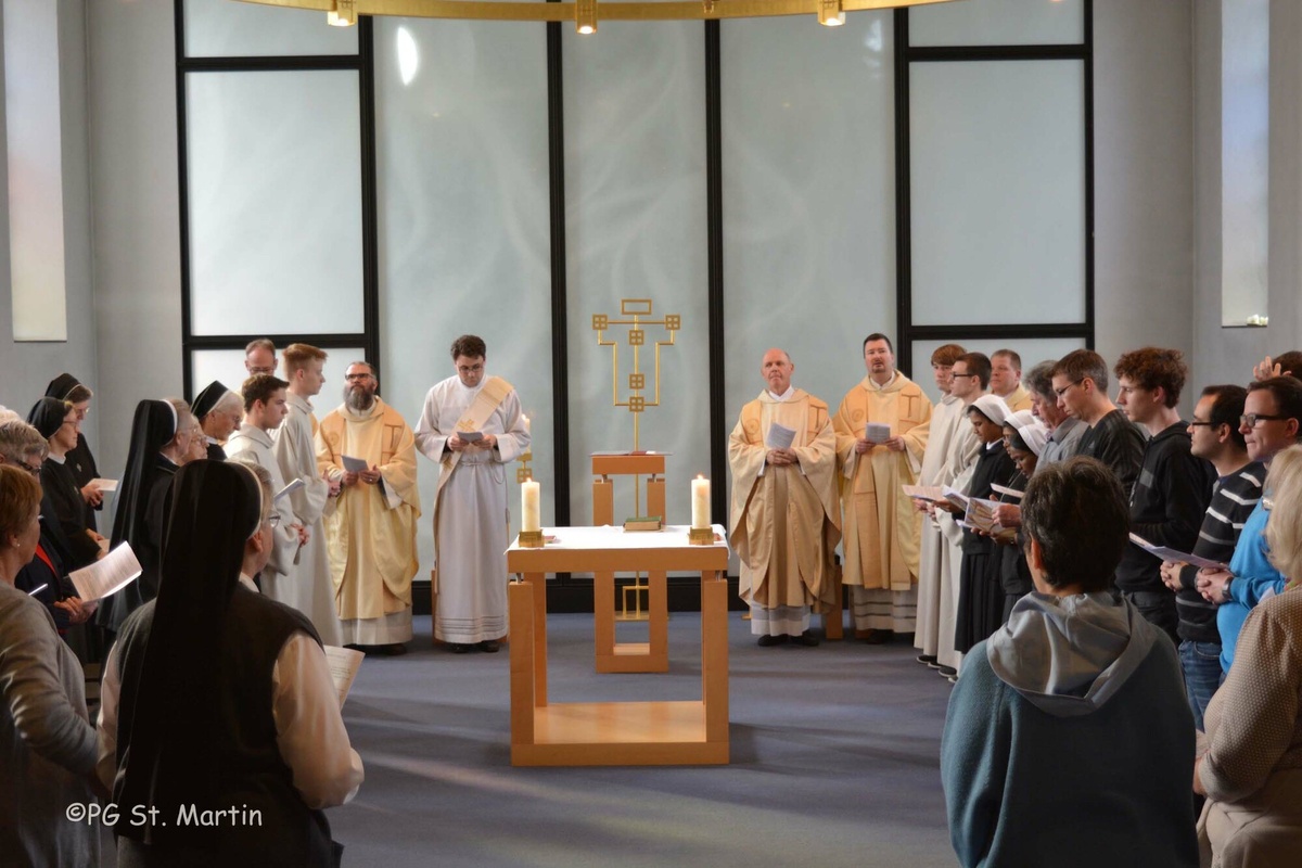 Domvikar Paul Weismantel feierte die heilige Messe zum Abschluss der Berufungswallfahrt gemeinsam mit Pfarrer Jan Kölbel, Vikar und Regionaljugendseelsorger Bernd Winter, Franziskanerminorit Pater Steffen Behr und Pater Alberto Onofri von der Franziskanischen Gemeinschaft von Betanien sowie Nicolas Kehl im Amt des Diakons. Zum Abschluss des Wallfahrtstages waren alle Teilnehmer noch zur Begegnung beim Abendessen eingeladen.