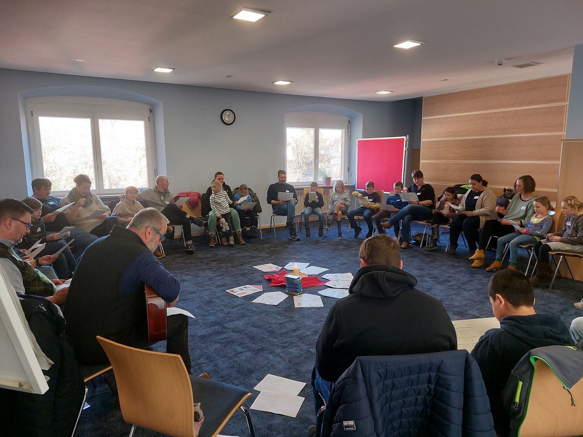Bei der ausgebuchten Veranstaltung kamen neun Familien mit rund 30 Personen zusammen, wie die Ehe- und Familienseelsorge Miltenberg berichtet. Vorbereitet hatten den Tag Dekan Michael Prokschi, Pfarrer Jan Kölbel sowie die Ehe- und Familienseelsorger Walter Lang und Regina Thonius-Brendle. Los ging es mit dem gegenseitigen Kennenlernen von Eltern, Kommunion- und Geschwisterkindern anhand einer „lebendigen Landkarte“ und einer Einladungskarte für das eigene Zuhause. Die Fragestellung war: „Worauf dürfen sich Gäste bei uns freuen?“ Nach dem Mittagessen starteten die Familien in einen kreativen Nachmittag zum Thema „Jesus, wo wohnst du?“. Die biblische Erzählung von der Begegnung der Jünger, die Jesus diese Frage stellen, inspirierte Eltern und Kinder, selbst in Austausch zu kommen: „Wie finden wir im Alltag Zeit, zusammen zu sein? Wo begegnen wir in unserem Familienleben und unserem Lebensumfeld Gott?“ Zu diesen Fragen konnten sich die Erwachsenen im Erzählcafé und die Kinder bei einer Legearbeit austauschen. Eine adventliche Lichtwahrnehmung und das Basteln von Windlichtern boten ebenfalls Möglichkeiten, den Fragen nachzugehen. Mit einem Gottesdienst in der Kapelle des Jugendhauses, gestaltet mit Elementen des gemeinsamen Tages, endete der Familientag.