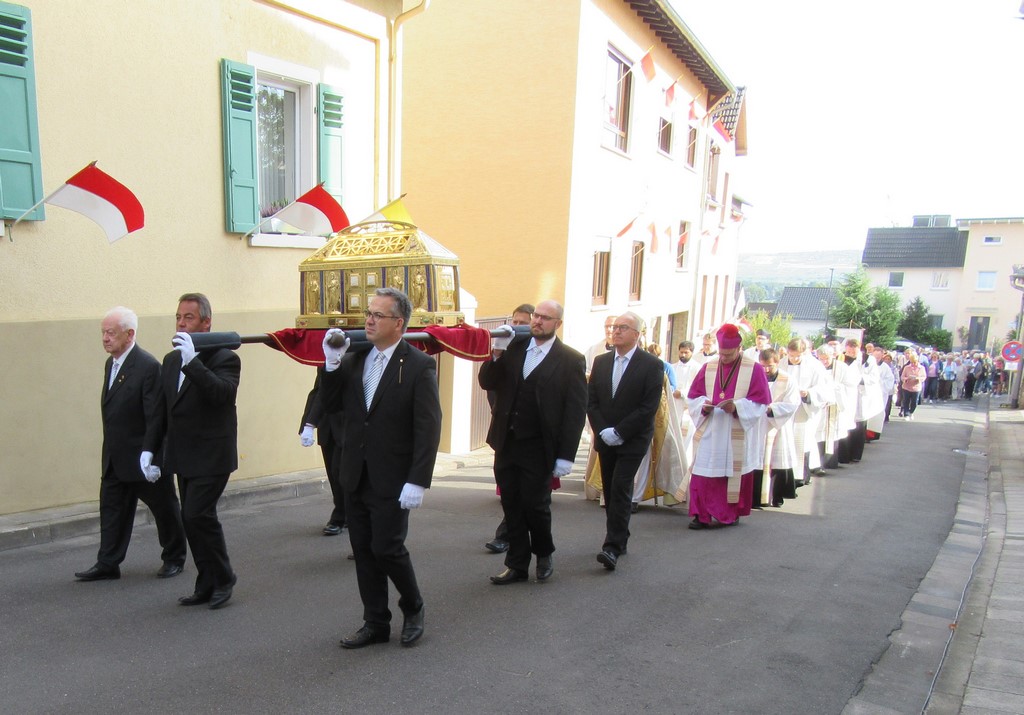 Auch wenn sie zu verschiedenen Diözesen gehören, ist es mittlerweise schon Tradition, dass sich Gläubige aus Neustadt und Mömlingen gemeinsam zum Todestag der Hl. Hildegard auf den Weg machen, um das Hildegardisfest in Rüdesheim-Eibingen mitzufeiern. Mit schätzungsweise 1000 Gläubigen, auch aus Frankreich, Dänemark, Polen und den Niederlanden nahmen sie am Pontifikalamt mit Erzbischof Edmundo Abastoflor aus La Paz und dem Limburger Weihbischof Dr. Thomas Löhr bei strahlendem Sonnenschein vor der Eibinger Kirche teil.