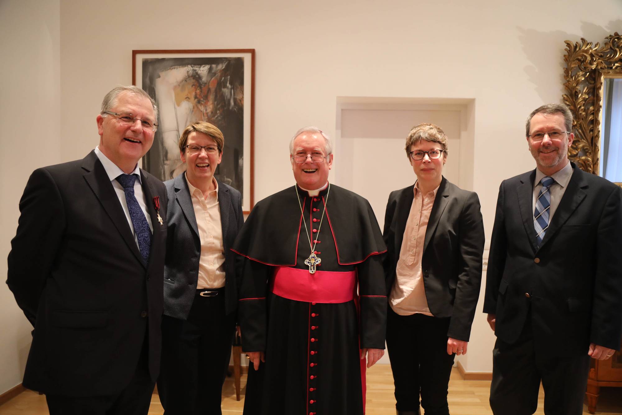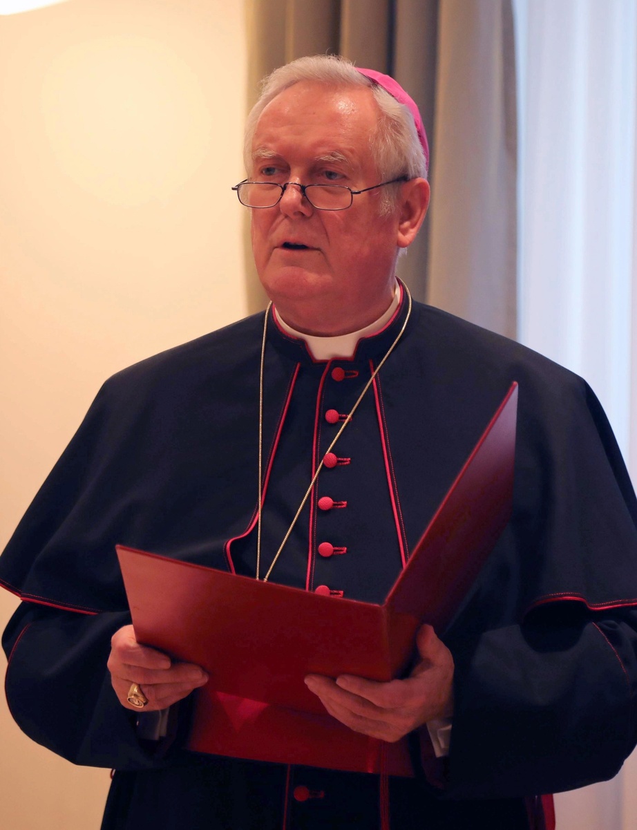 Professor Dr. Wolfgang Weiß, Jahrgang 1957, stammt aus Osterhofen und ist nach dem Studium von Geschichte und Theologie in Passau und Würzburg seit 1999 Professor für Fränkische Kirchengeschichte und Kirchengeschichte der neuesten Zeit an der Universität Würzburg. „In seinem wissenschaftlichen Wirken fällt die breite Qualifikation von Professor Weiß auf, der zu den verschiedensten Epochen der Kirchengeschichte quellenfundierte Studien vorgelegt hat. Dabei beschränkt er seine Erkenntnisse nicht auf den wissenschaftlichen Bereich, sondern ist sich nicht zu schade, in allgemeinen Publikationen und Zeitschriften und durch Vorträge auch außerhalb der wissenschaftlichen Welt sein Wissen in die allgemeine Öffentlichkeit zu tragen und sich dort auch dem Diskurs über die Rolle in der Geschichte zu stellen“, sagte Bischof Hofmann in der Laudatio. In ähnlicher Weise trage Weiß auch als Autor von Lehrbriefen für „Theologie im Fernkurs“ zur Verbreitung kirchengeschichtlichen Wissens bei. Seit 2003 ist Weiß ehrenamtlicher Vorsitzender des Würzburger Diözesangeschichtsvereins. „Über jedes erwartbare Maß hinaus“, wie der Bischof betonte, kümmert der Kirchenhistoriker sich um die Herausgabe von Quelleneditionen und Studien im Rahmen der Reihe „Quellen und Forschungen zur Geschichte des Bistums und Hochstifts Würzburg“ und um das Werben neuer Vereinsmitglieder. Als Beispiel für das Weiß’sche Engagement nannte Bischof Hofmann die jährlichen Kolloquien zu Stand und Aufgaben der Diözesangeschichtsforschung, die Fortführung und bevorstehende Vollendung der Würzburger Bischofsreihe im Rahmen der Reihe „Germania Sacra“, außerdem die Planung, Organisation und Darstellung der Würzburger Dombaugeschichte sowie die Aufarbeitung der Geschichte der Würzburger Theologen im Dritten Reich – letzteres gemeinsam mit Professor Dr. Dominik Burkhard. Bischof Hofmann lobte die beständige Kooperation von Professor Weiß mit Fachkollegen aller Richtungen und diözesanen Stellen. Unter anderem wirkt er als Beiratsmitglied der Diözesanbibliothek, als Vorstandsmitglied der Theodor-Kramer-Stiftung sowie der Hermann-Wütschner-Stiftung und als wissenschaftlicher Beirat mehrerer großer Ausstellungen. „Das hohe Engagement, sein Eintreten für die Belange der katholischen Kirche unter Wahrung der strikten Wissenschaftlichkeit haben ihm großen Respekt vor seinen fachlichen Leistungen und die Wertschätzung breiter Kreise eingebracht“, würdigte der Bischof Weiß.