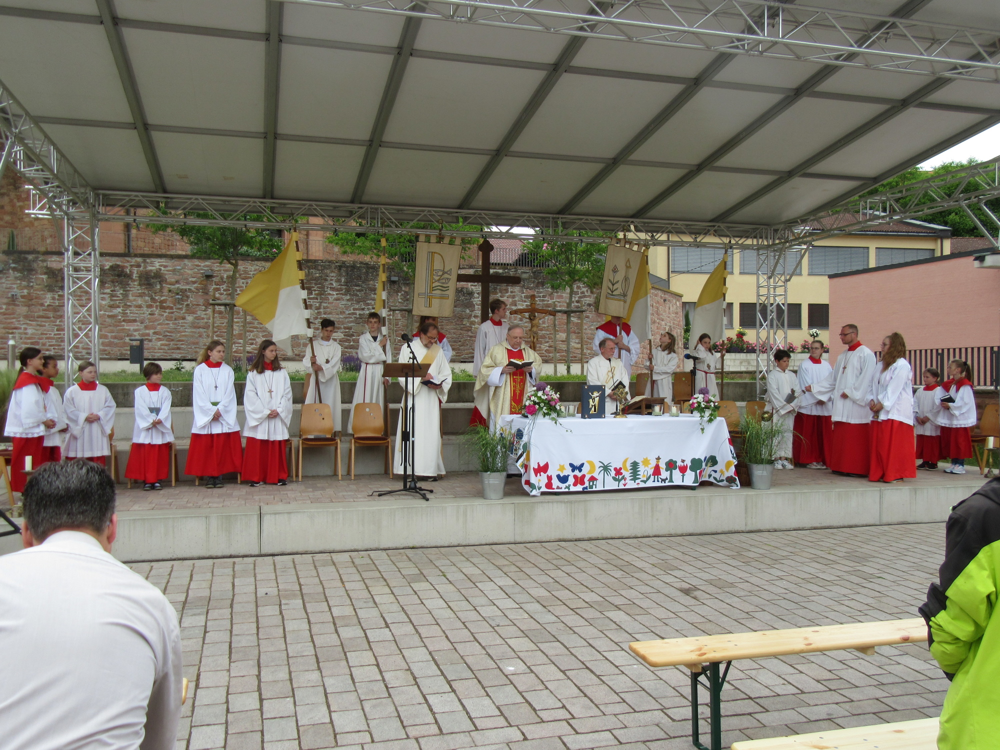 Die Fürbitten trug GemReferentin Dagmar Regh vor. Am Ende des Gottesdienstes dankte Pfarrer Haas den zahlreichen Gläubigen für ihr Kommen, allen die Sorge getragen haben für die Vorbereitung und Durchführung des Gottesdienstes, besonders dem Musikverein Mömlingen, den Minis, der KJG, die für das leibliche Wohl zuständig war und wünschte auch allen Vätern alles Gute zum Vatertag.