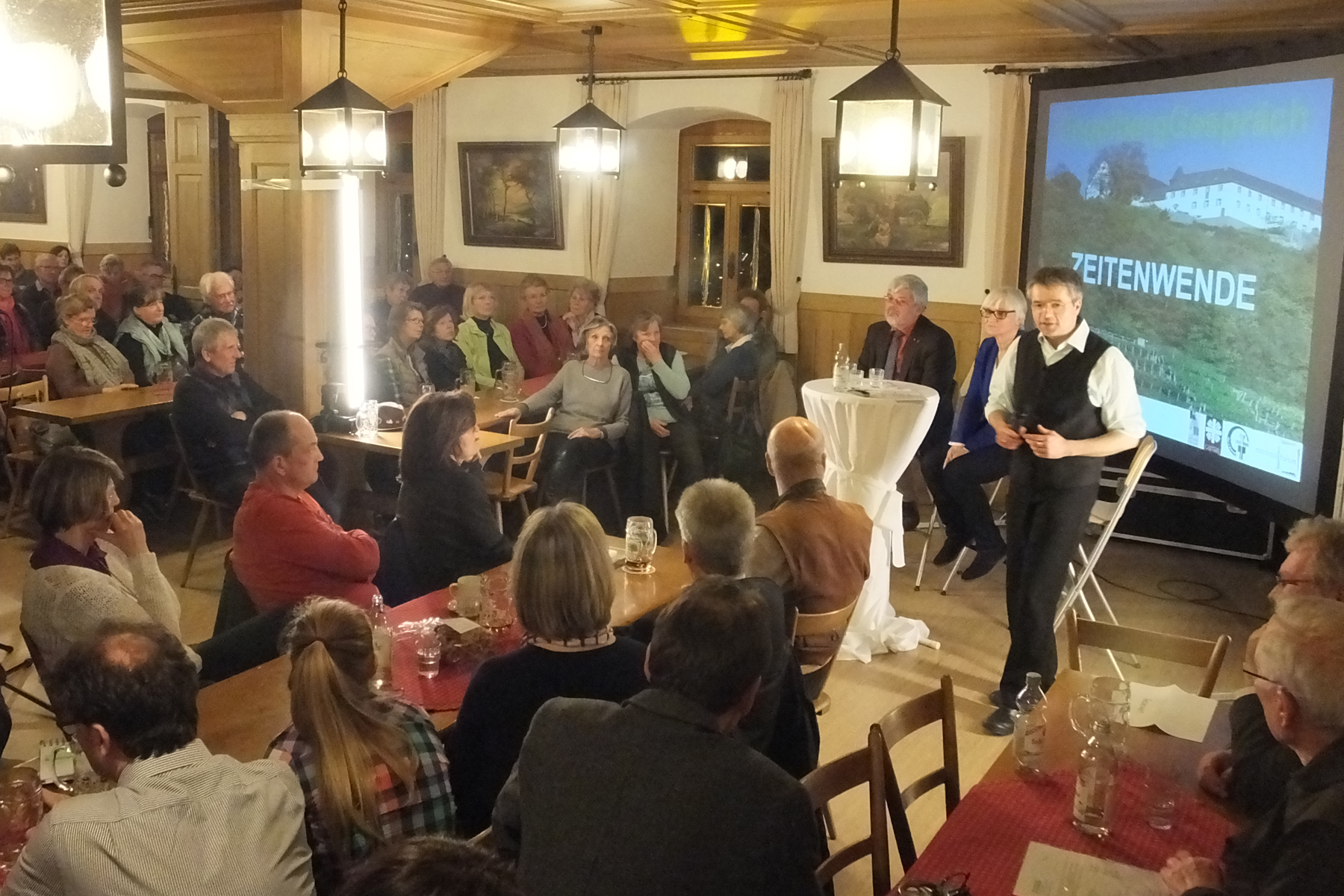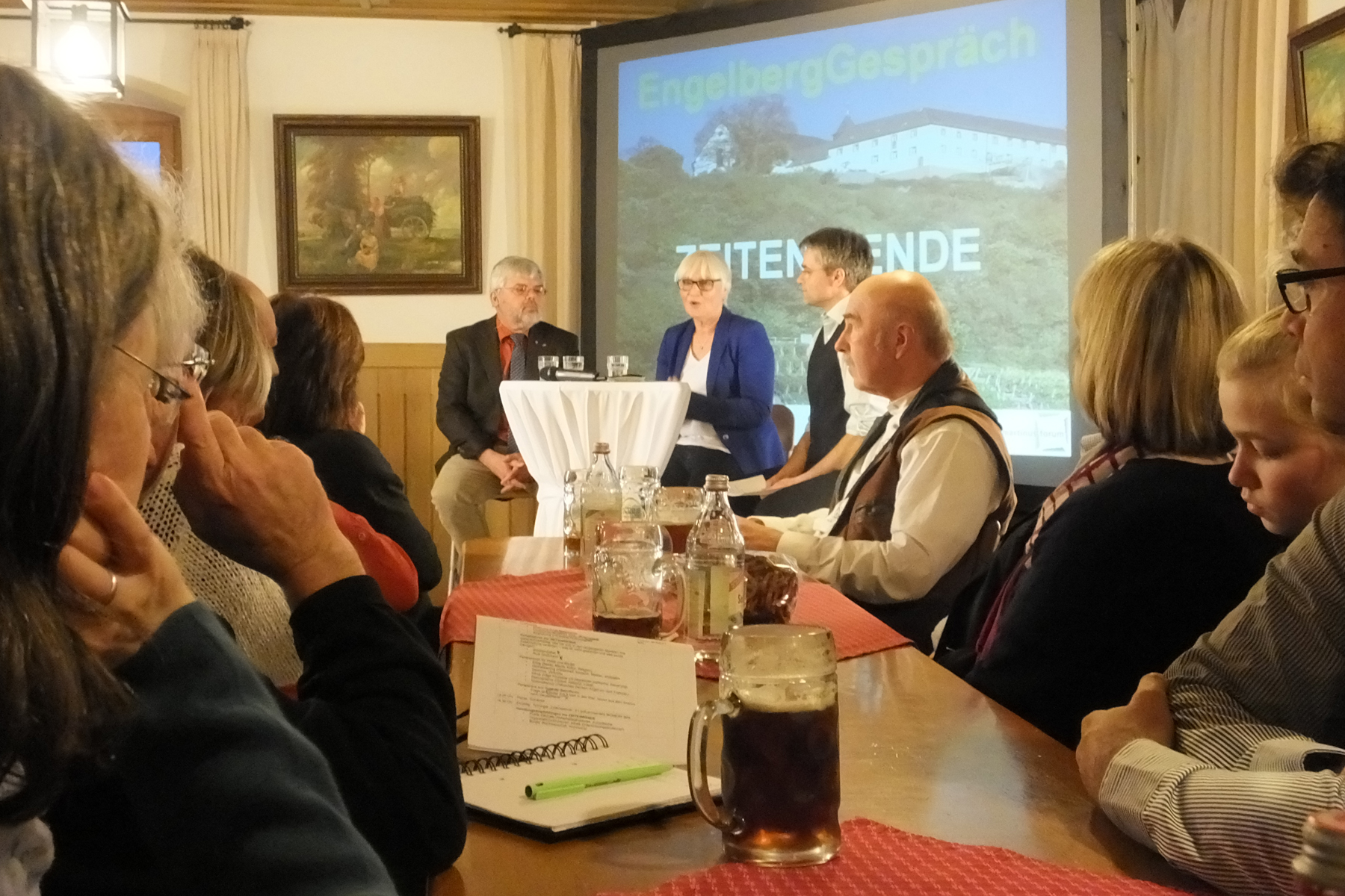 Die Aschaffenburger Band "Moment mal" begleitete und kommentierten den Abend mit zum Großteil selbstgeschriebenen Liedern. Den Diskussionsteil schloss sie aber mit dem über 50 Jahre alten Song von Bob Dylon "The times, they are a-changing - die Zeiten ändern sich" ab. Für die Zuhörer schloss sich damit ein Kreis: Zeitenwenden sind wohl für jede Generation wieder neu zu bewältigen.