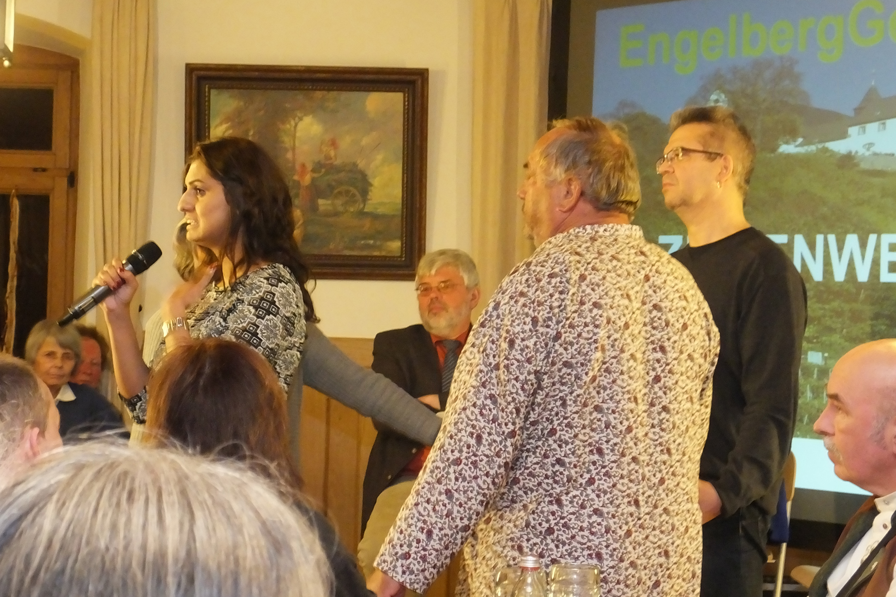 Es war zu spüren, dass die Podiumsteilnehmern in vielem auch dem Publikum des Abends aus dem Herzen sprachen. In einer angeregten Diskussion wurden positive Beispiele und Probleme genannt. Lavidije Zidi, die selbst in den 90iger Jahren aus dem Kosovo geflohen war und inzwischen als Lehrerin arbeitet, demonstrierte in einem kurzen Rollenspiel, wie ihre Integration gelungen war. Sie zeigte auf, dass es dafür zuallererst eine offene Gesellschaft braucht, die den Neuankömmlingen eine Chance gibt, hier anzukommen. Es wurde aber auch die Sorge angesprochen, dass die vielen ehrenamtlichen Helfer langsam müde werden. Flucht und Integration, so merkte ein anderer Teilnehmer an, seien in der politischen Diskussion inzwischen so dominant geworden, dass kaum noch über anderes gesprochen würde. Es gäbe aber noch andere wichtige Themen, die behandelt werden müssten, damit unsere Gesellschaft vorn kommt.